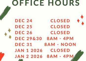 2025 HOLIDAY OFFICE HOURS DEC 24 CLOSED DEC 25 CLOSED DEC 26 CLOSED DEC 29…