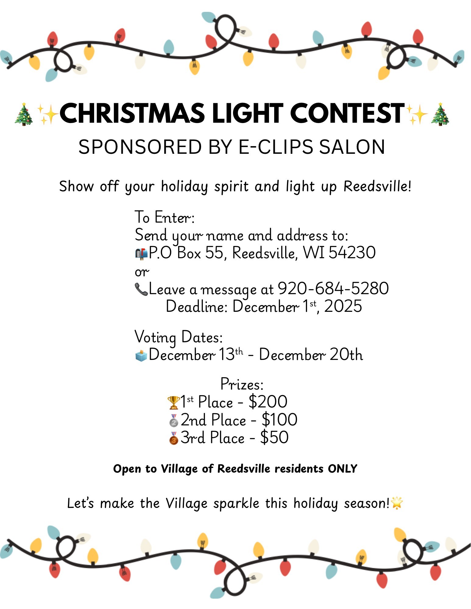 Christmas Light Contest – Sponsored by E-Clips Salon