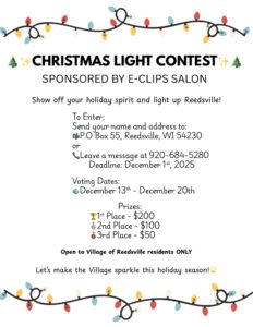 Christmas Light Contest – Sponsored by E-Clips Salon Show off your holiday spirit and light…